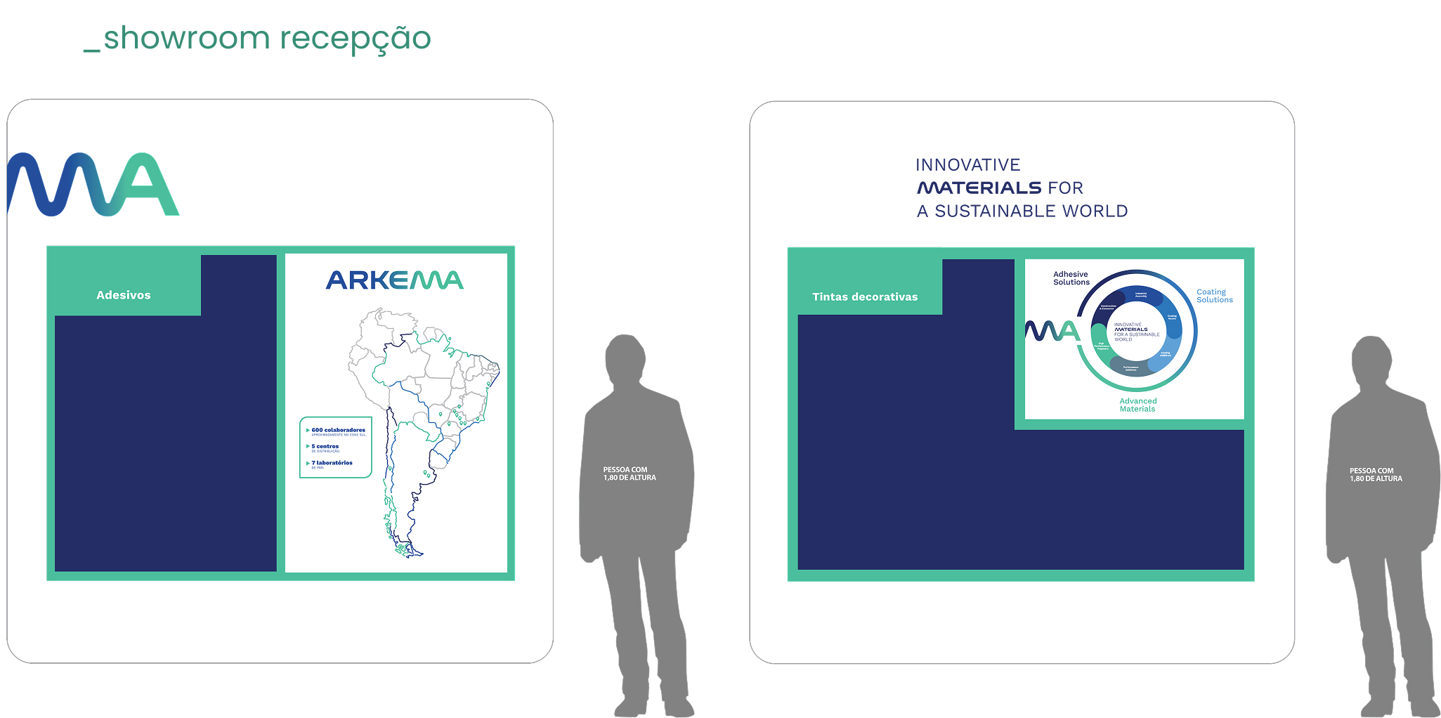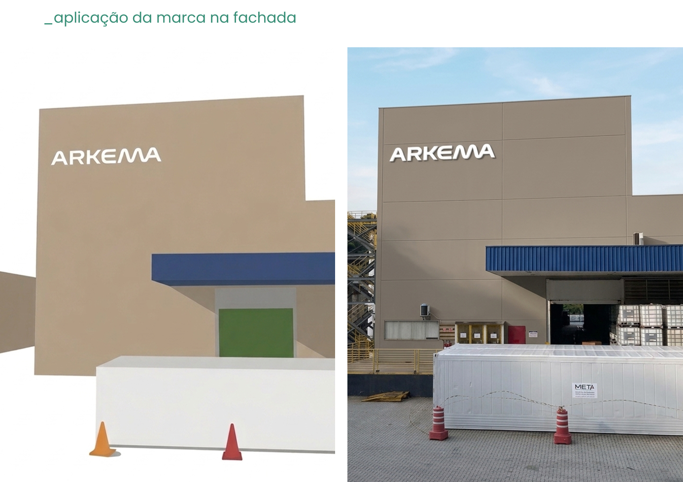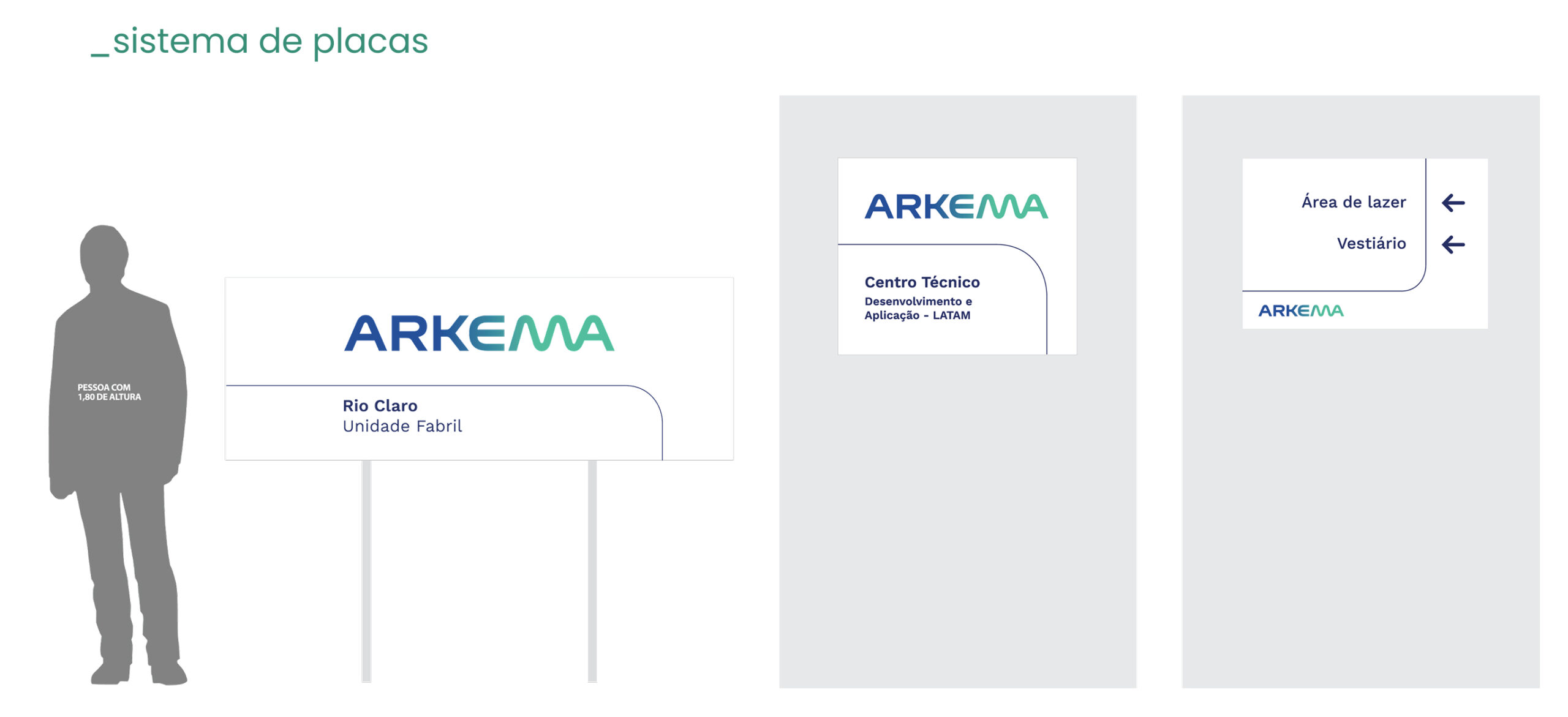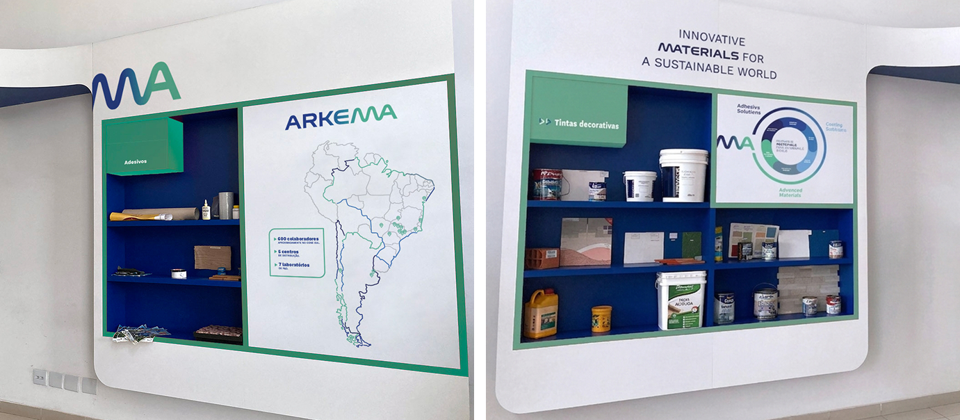 O projeto de sinalização e ambientação das fábricas da Arkema, em Araçariguama e Rio Claro, dá continuidade ao trabalho desenvolvido para o escritório de São Paulo, reforçando a unidade e a consistência da identidade visual da marca em todas as suas unidades. Para a produção das peças, foram especificados materiais como aço galvanizado, estruturas em metalon, PS e adesivos com proteção, garantindo robustez, durabilidade e acabamento de alta qualidade.